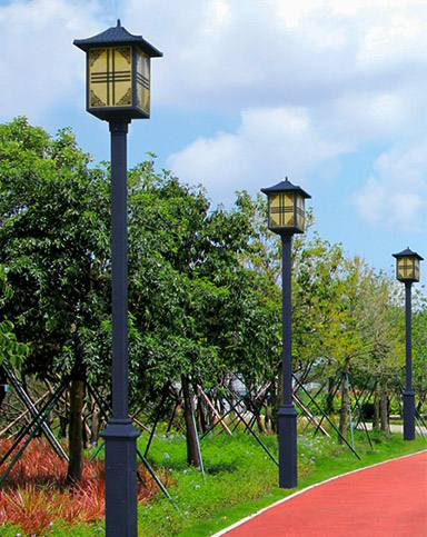 太阳能库尔勒庭院灯以太阳辐射能为能源,白天利用太阳能电池板给蓄电池充电,晚上蓄电池给庭院灯光源供电使用,无需复杂昂贵的管线铺设,可任意调整灯具的布局,安全节能无污染,充电及开/关过程采用智能控制,光控自动开关,无需人工操作,工作稳定可靠,节省电费,免维护。